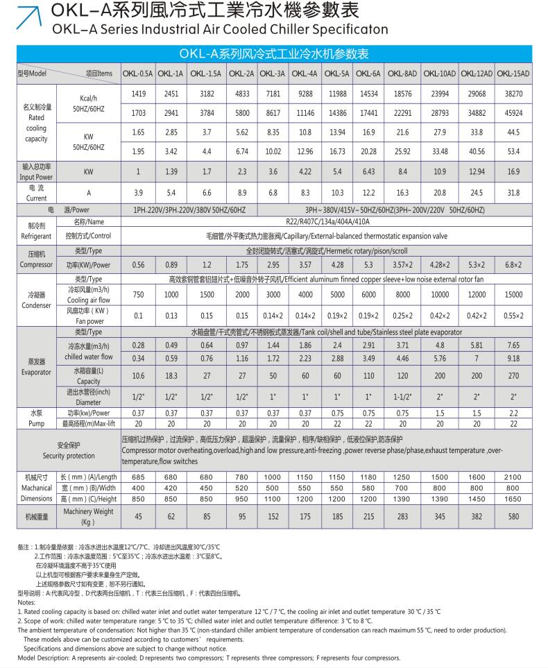 歐科隆牌風冷式冷水機之制冷心臟采用全密封低噪音,振動小,高效能省電進口名牌壓縮機,電器控制全部采用進口名牌原件,熱交換器采用殼管式冷凝器,換熱效能高,便于清洗保養(yǎng)。