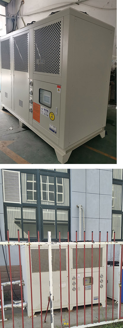本案例是山西一家高嶺土行業(yè)采購的風(fēng)冷一體式冷水機(jī),內(nèi)置水箱水泵,接上電源再接上進(jìn)出水管和生產(chǎn)設(shè)備循環(huán)就可以正常使用了。