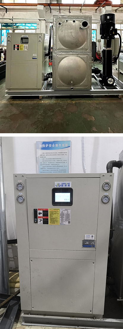 本案為東北大學實驗室,冷軋鋼實驗室使用的分體式冷水機,散熱外機放置在室外通風散熱良好處。內(nèi)機和水箱水泵撬裝一體,帶撬裝1立方水箱,一臺45KW功率變頻水泵。水的壓力流量變頻可調(diào)。